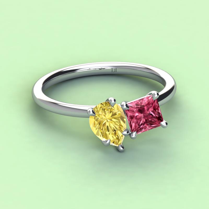 Pear Shape Yellow Sapphire & Princess Shape Pink Tourmaline 2.45 ctw Four Prong Womens 2 Stone Duo Engagement Ring 18K White Gold More Details ...