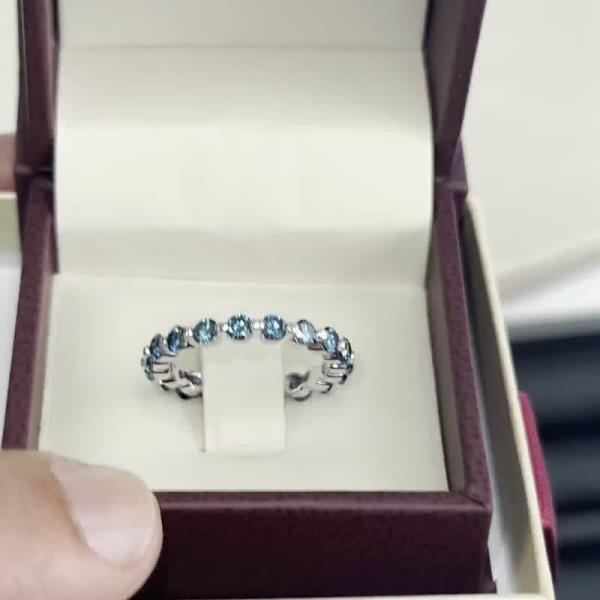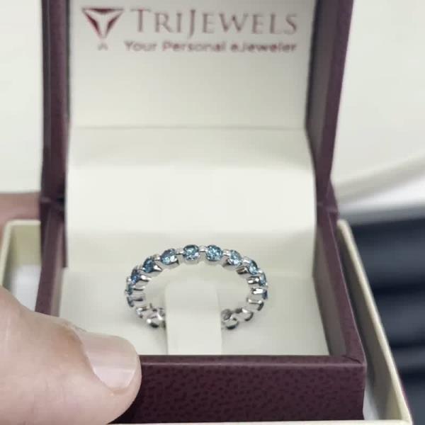 Valerie Floating Blue Diamond Womens Three Quarter Eternity Ring Stackable 1/2 ctw 18K Yellow Gold | TriJewels