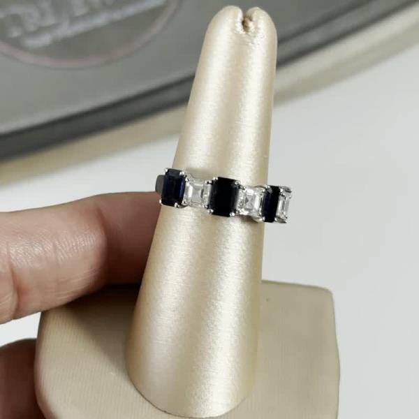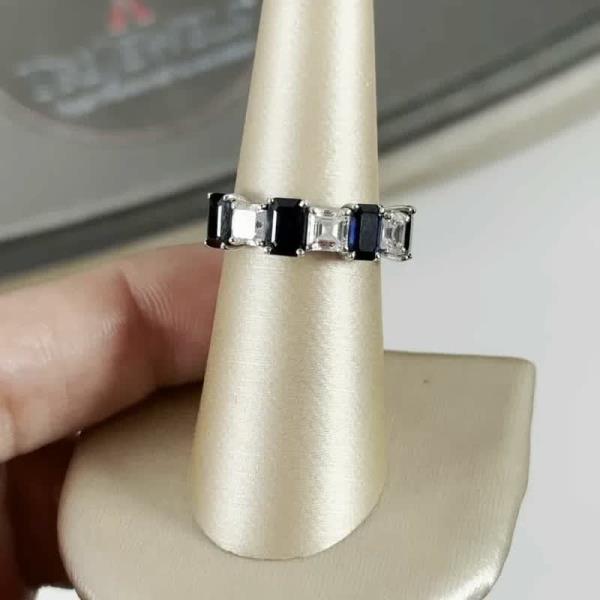 Aria Emerald Cut Smoky Quartz and Asscher Cut Diamond 7 Stone Wedding Band