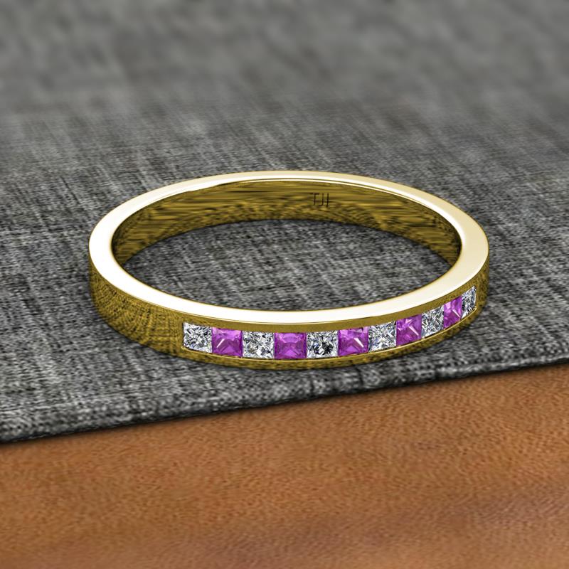 Princess Cut (2 mm) Amethyst and Diamond Channel Set 11 Stone Womens Wedding Band Stackable 1/2 ctw 14K Yellow Gold More Details ...