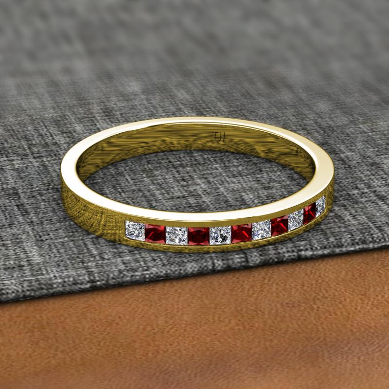 Princess Cut (2 mm) Red Garnet and Diamond Channel Set 11 Stone Womens Wedding Band Stackable 1/2 ctw 14K Yellow Gold More Details ...