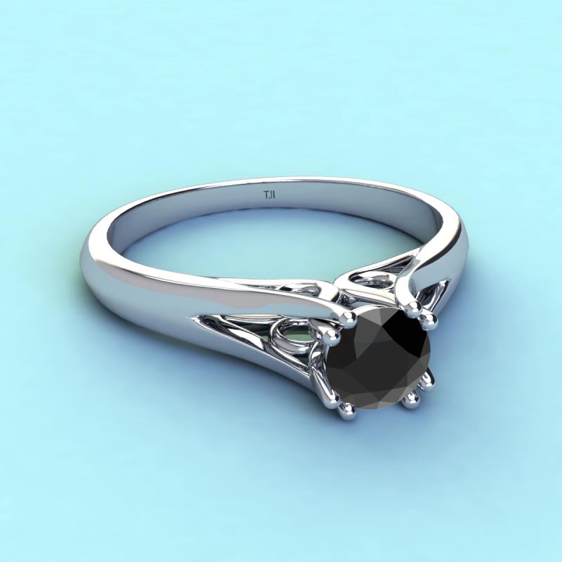 Wear this Stunning Solitaire Ring on any occasion and look your best which is mounted with a Black Diamond set with the unusual orientation of the Prongs that greatly enhances the split shank of the Ring with side swirl design giving it a swanky style.