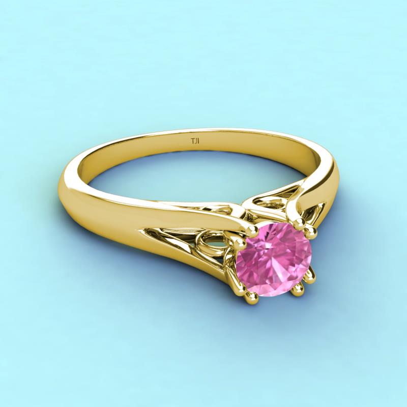 Round Lab Created Pink Sapphire 0.95 ct 8 Prong Womens Solitaire Engagement Ring 14K Yellow Gold More Details ...