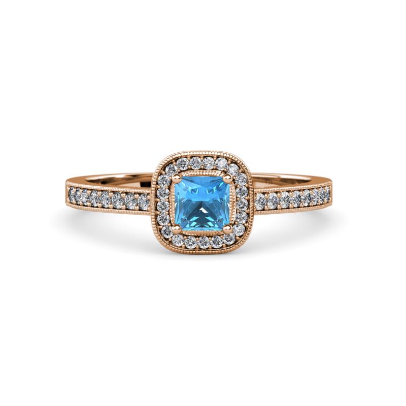 Princess Cut (5 mm) Blue Topaz and Diamond Womens Halo Engagement Ring 0.90 ctw 14K Rose Gold More Details ...