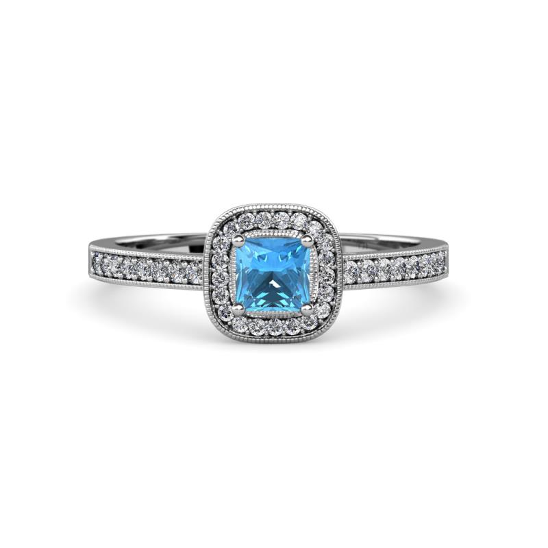 Princess Cut (5 mm) Blue Topaz and Diamond Womens Halo Engagement Ring 0.90 ctw 18K White Gold More Details ...