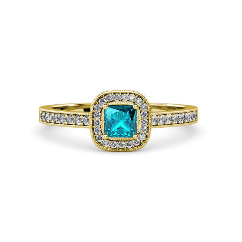 Princess Cut (5 mm) London Topaz and Diamond Womens Halo Engagement Ring 0.85 ctw 18K Yellow Gold More Details ...