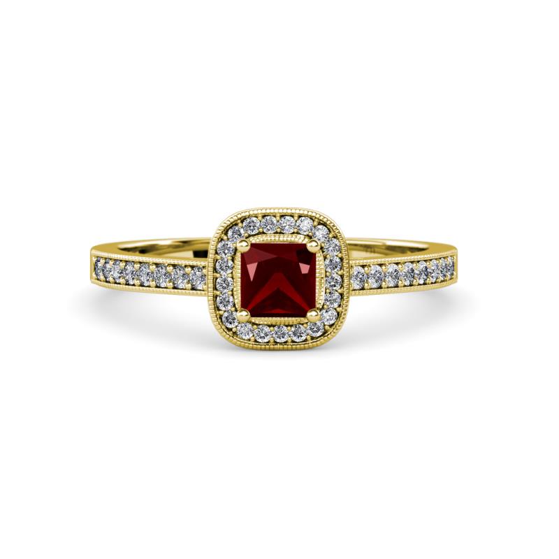 Princess Cut (5 mm) Red Garnet and Diamond Womens Halo Engagement Ring 0.90 ctw 14K Yellow Gold More Details ...