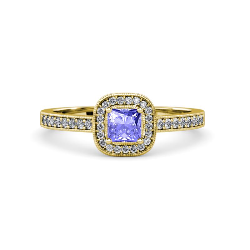 Princess Cut (5 mm) Tanzanite and Diamond Womens Halo Engagement Ring 0.90 ctw 18K Yellow Gold More Details ...