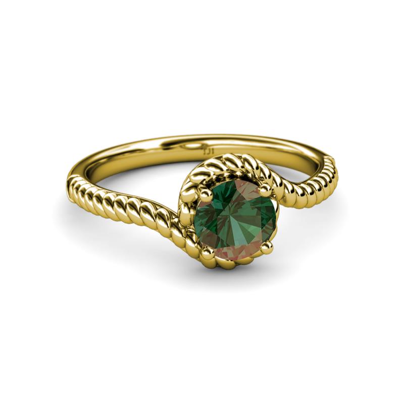 This Elegant Solitaire Engagement Ring in 14K Yellow Gold features a bypass Shank wrapping around the Center Lab Created Alexandrite with Twisted Rope design on the Band which Symbolize your endless Love for each other.