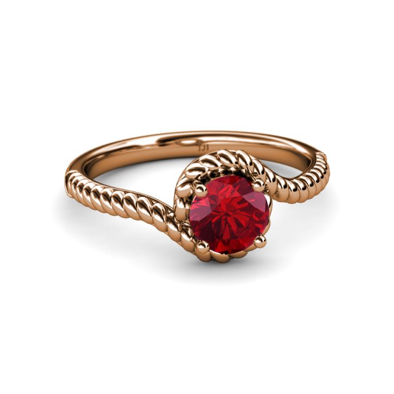 This Elegant Solitaire Engagement Ring in 18K Rose Gold features a bypass Shank wrapping around the Center Ruby with Twisted Rope design on the Band which Symbolize your endless Love for each other.