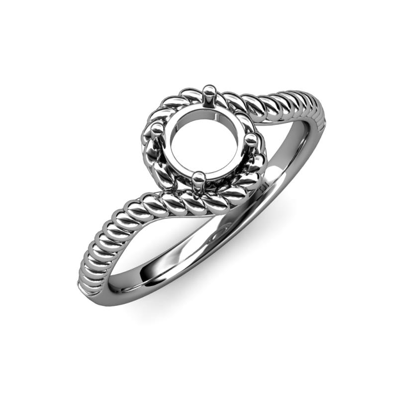Four Prong Semi Mount Bypass Solitaire Rope Engagement Ring in 14K White Gold. More Details ...