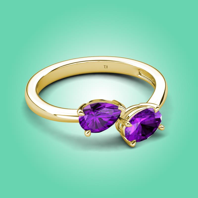 1.37 ctw Amethyst Pear Shape 7x5 mm & Amethyst Oval Shape 7x5 mm with Prong setting Two Stone Duo Women Engagement Ring in 10K Yellow Gold More Details ...