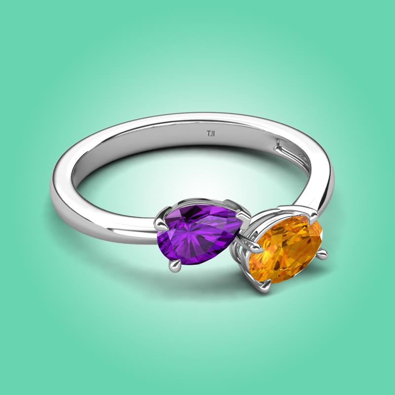 1.37 ctw Amethyst Pear Shape 7x5 mm & Citrine Oval Shape 7x5 mm with Prong setting Two Stone Duo Women Engagement Ring in Platinum More Details ...