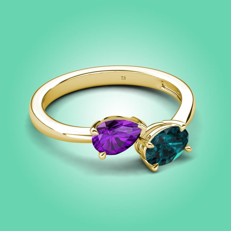 1.65 ctw Amethyst Pear Shape 7x5 mm & London Blue Topaz Oval Shape 7x5 mm with Prong setting Two Stone Duo Women Engagement Ring in 14K Yellow Gold More Details ...