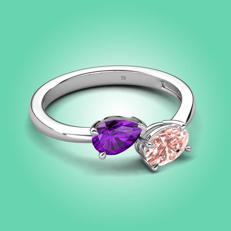 1.40 ctw Amethyst Pear Shape 7x5 mm & Morganite Oval Shape 7x5 mm with Prong setting Two Stone Duo Women Engagement Ring in 14K White Gold More Details ...