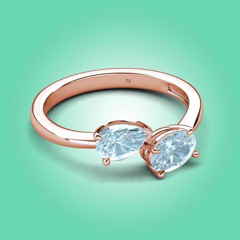 1.32 ctw Aquamarine Pear Shape 7x5 mm & Aquamarine Oval Shape 7x5 mm with Prong setting Two Stone Duo Women Engagement Ring in 10K Rose Gold More Details ...