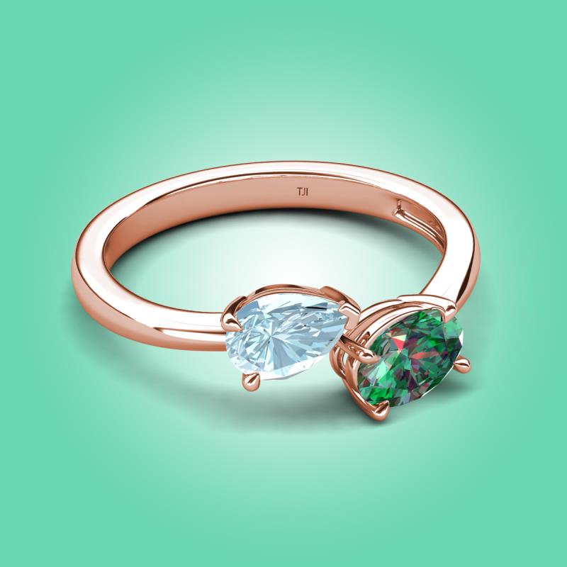 1.76 ctw Aquamarine Pear Shape 7x5 mm & Lab Created Alexandrite Oval Shape 7x5 mm with Prong setting Two Stone Duo Women Engagement Ring in 14K Rose Gold More Details ...