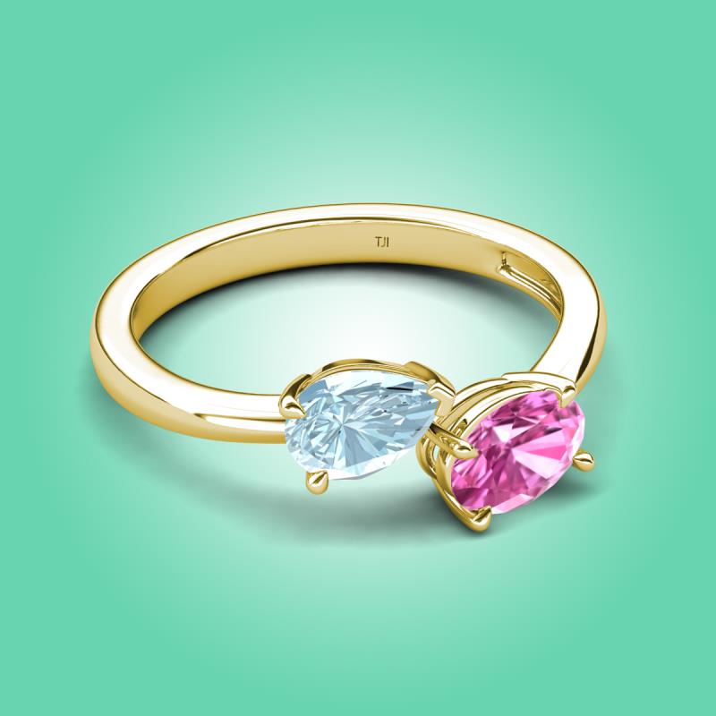 1.60 ctw Aquamarine Pear Shape 7x5 mm & Pink Sapphire Oval Shape 7x5 mm with Prong setting Two Stone Duo Women Engagement Ring in 18K Yellow Gold More Details ...