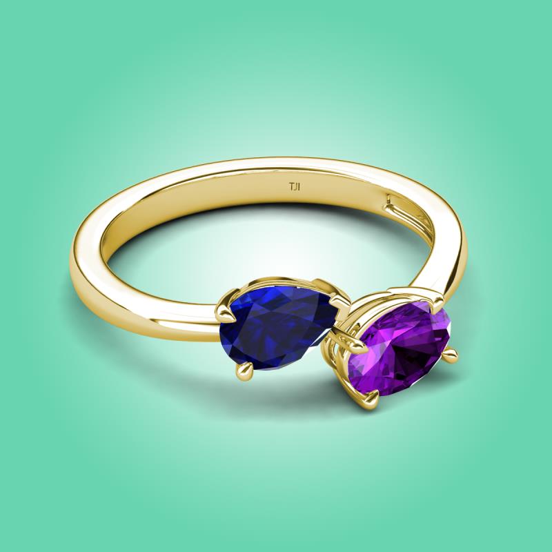 1.62 ctw Blue Sapphire Pear Shape 7x5 mm & Amethyst Oval Shape 7x5 mm with Prong setting Two Stone Duo Women Engagement Ring in 14K Yellow Gold More Details ...
