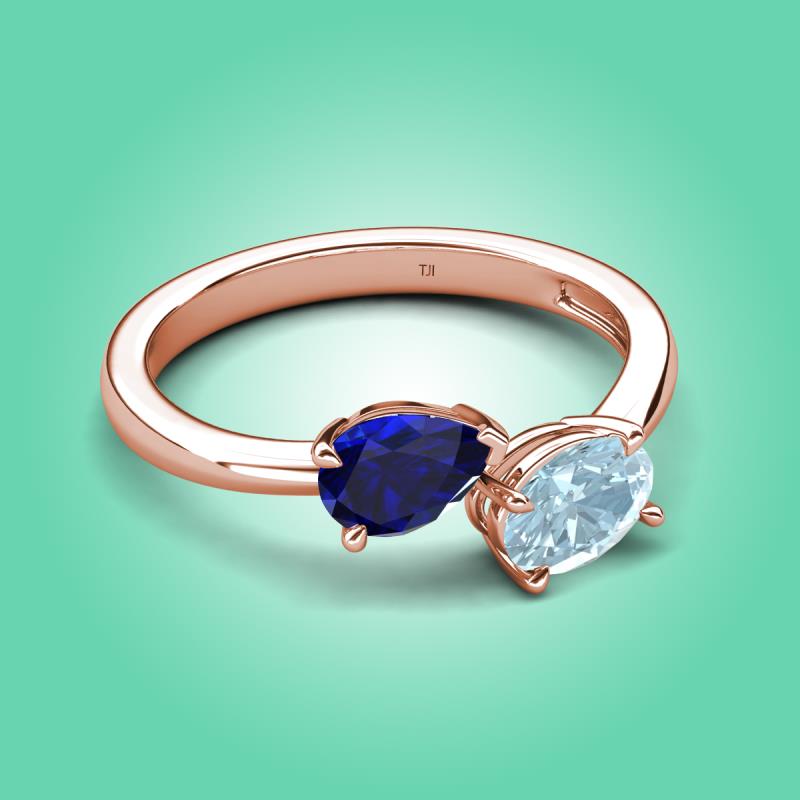 1.62 ctw Blue Sapphire Pear Shape 7x5 mm & Aquamarine Oval Shape 7x5 mm with Prong setting Two Stone Duo Women Engagement Ring in 18K Rose Gold More Details ...