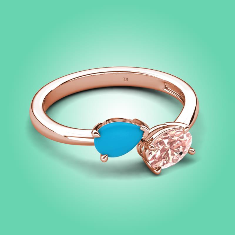 1.65 ctw Blue Sapphire Pear Shape 7x5 mm & Morganite Oval Shape 7x5 mm with Prong setting Two Stone Duo Women Engagement Ring in 18K Rose Gold More Details ...