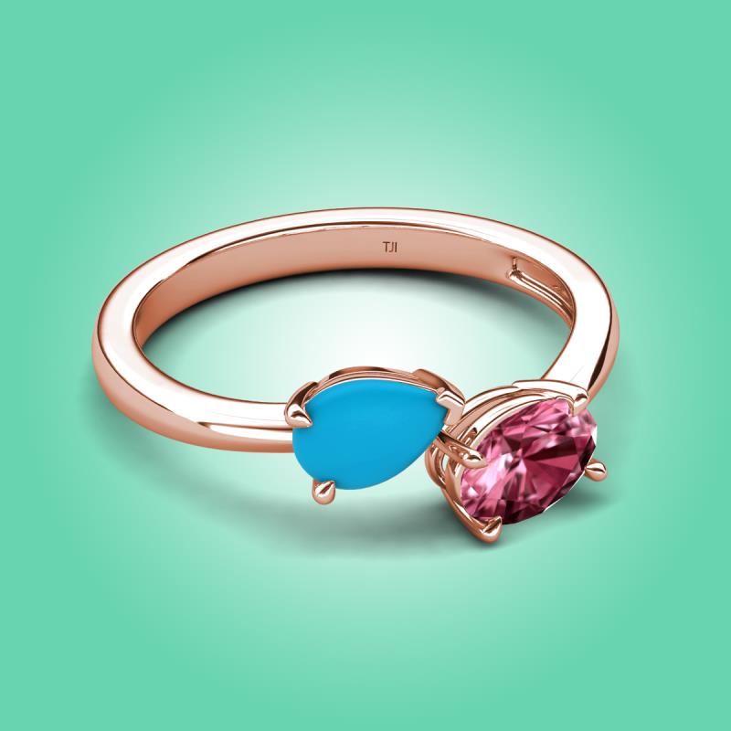 1.75 ctw Blue Sapphire Pear Shape 7x5 mm & Pink Tourmaline Oval Shape 7x5 mm with Prong setting Two Stone Duo Women Engagement Ring in 14K Rose Gold More Details ...