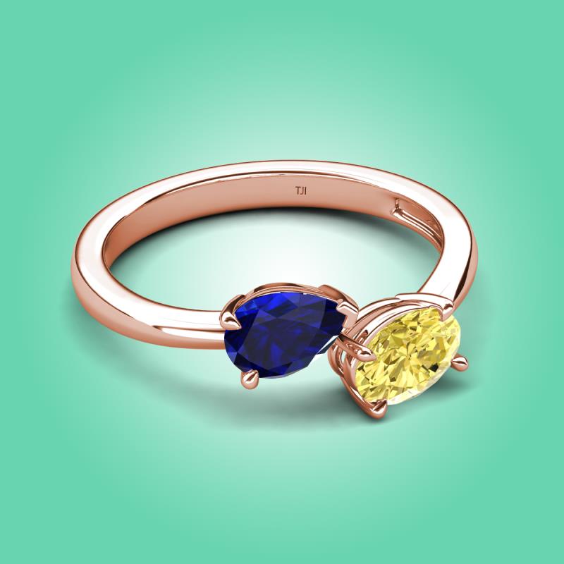 1.90 ctw Blue Sapphire Pear Shape 7x5 mm & Yellow Sapphire Oval Shape 7x5 mm with Prong setting Two Stone Duo Women Engagement Ring in 18K Rose Gold More Details ...