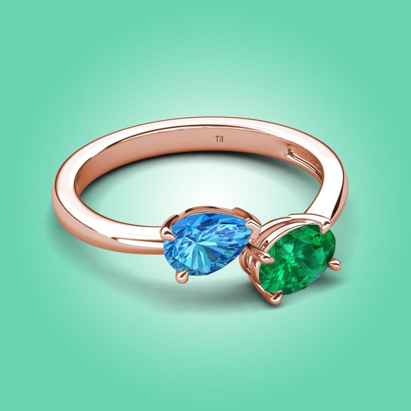 1.65 ctw Blue Topaz Pear Shape 7x5 mm & Emerald Oval Shape 7x5 mm with Prong setting Two Stone Duo Women Engagement Ring in 18K Rose Gold More Details ...