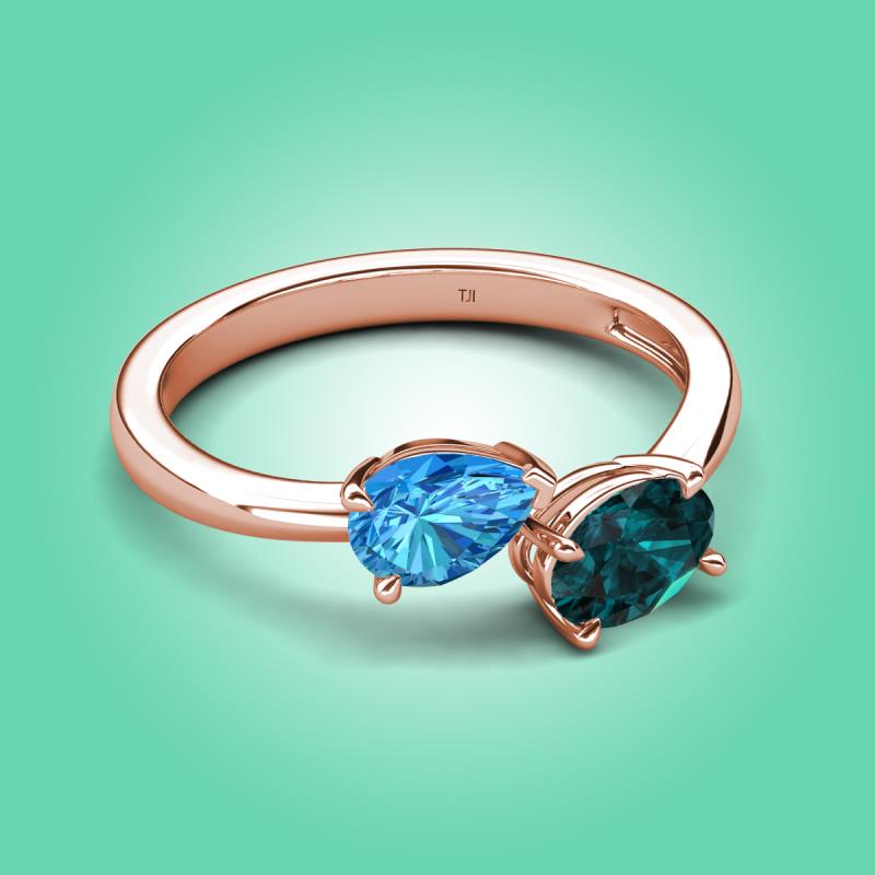 • 1 Blue Topaz Pear Shape 0.85 ctw/7x5 mm and 1 London Blue Topaz Oval Shape 1.00 ctw/7x5 mm Two Stone Duo Engagement Ring set in a Prong Setting.
