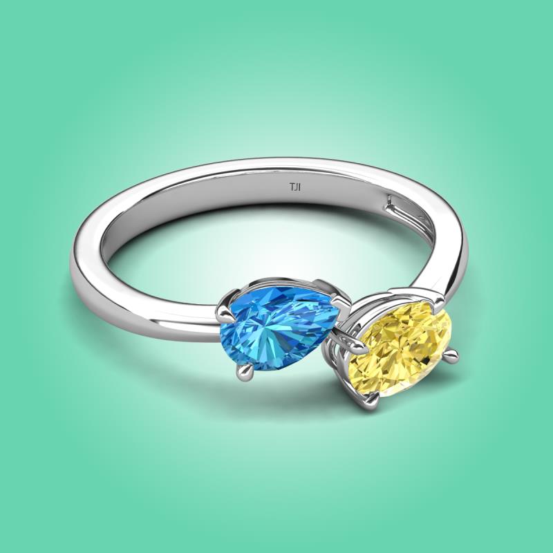 1.85 ctw Blue Topaz Pear Shape 7x5 mm & Yellow Sapphire Oval Shape 7x5 mm with Prong setting Two Stone Duo Women Engagement Ring in 18K White Gold More Details ...