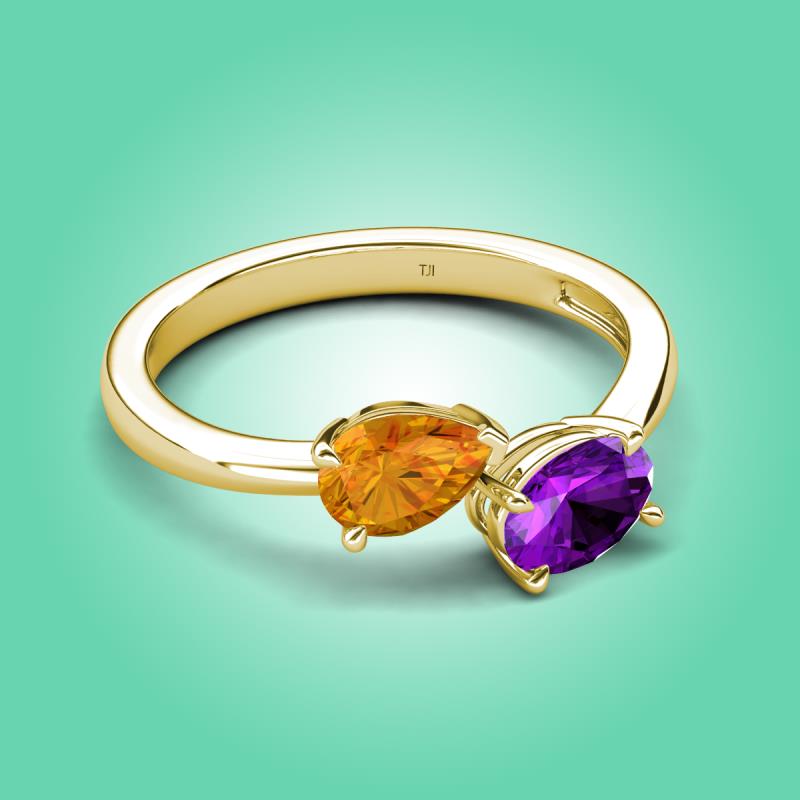 1.37 ctw Citrine Pear Shape 7x5 mm & Amethyst Oval Shape 7x5 mm with Prong setting Two Stone Duo Women Engagement Ring in 18K Yellow Gold More Details ...