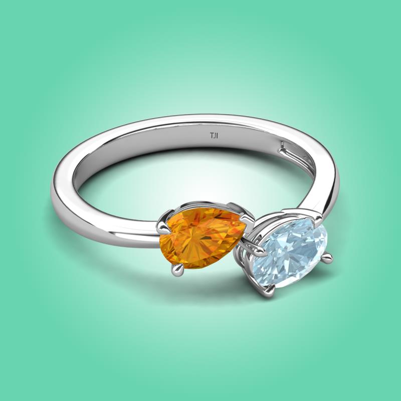 1.37 ctw Citrine Pear Shape 7x5 mm & Aquamarine Oval Shape 7x5 mm with Prong setting Two Stone Duo Women Engagement Ring in Platinum More Details ...