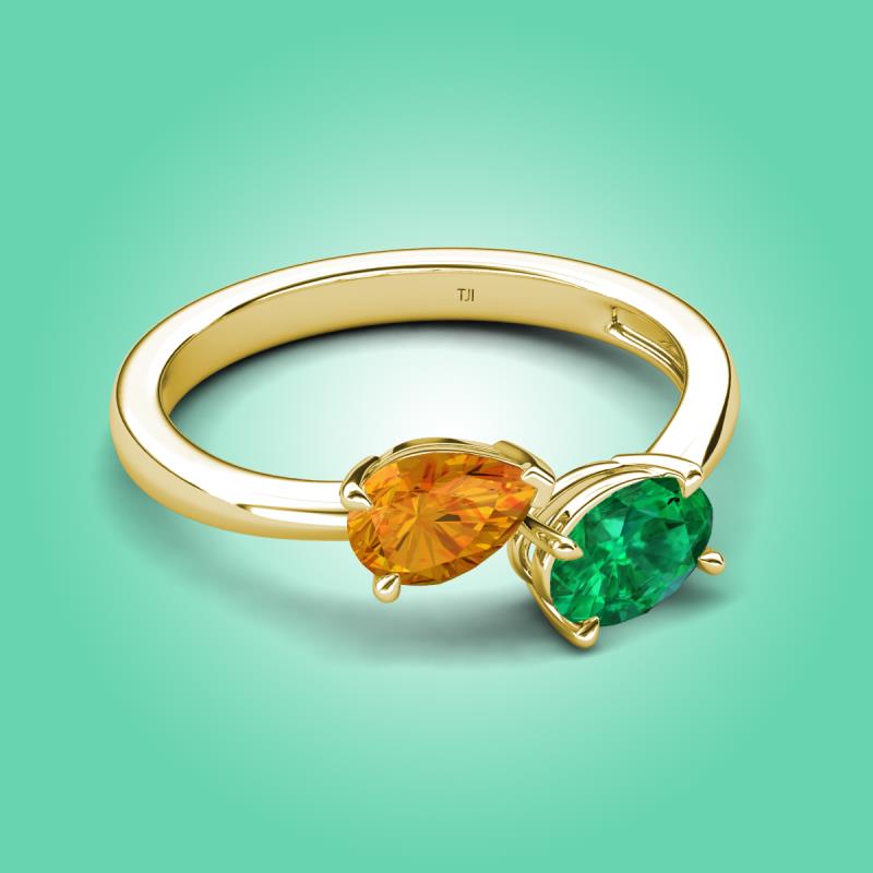 1.45 ctw Citrine Pear Shape 7x5 mm & Emerald Oval Shape 7x5 mm with Prong setting Two Stone Duo Women Engagement Ring in 18K Yellow Gold More Details ...