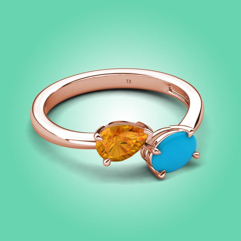 1.35 ctw Citrine Pear Shape 7x5 mm & Turquoise Oval Shape 7x5 mm with Prong setting Two Stone Duo Women Engagement Ring in 18K Rose Gold More Details ...