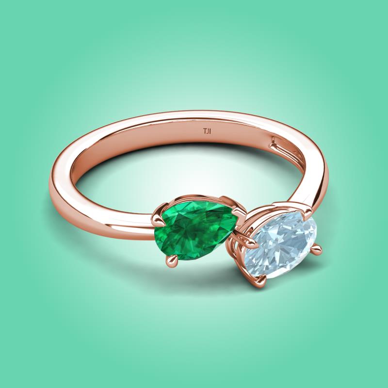 1.52 ctw Emerald Pear Shape 7x5 mm & Aquamarine Oval Shape 7x5 mm with Prong setting Two Stone Duo Women Engagement Ring in 14K Rose Gold More Details ...