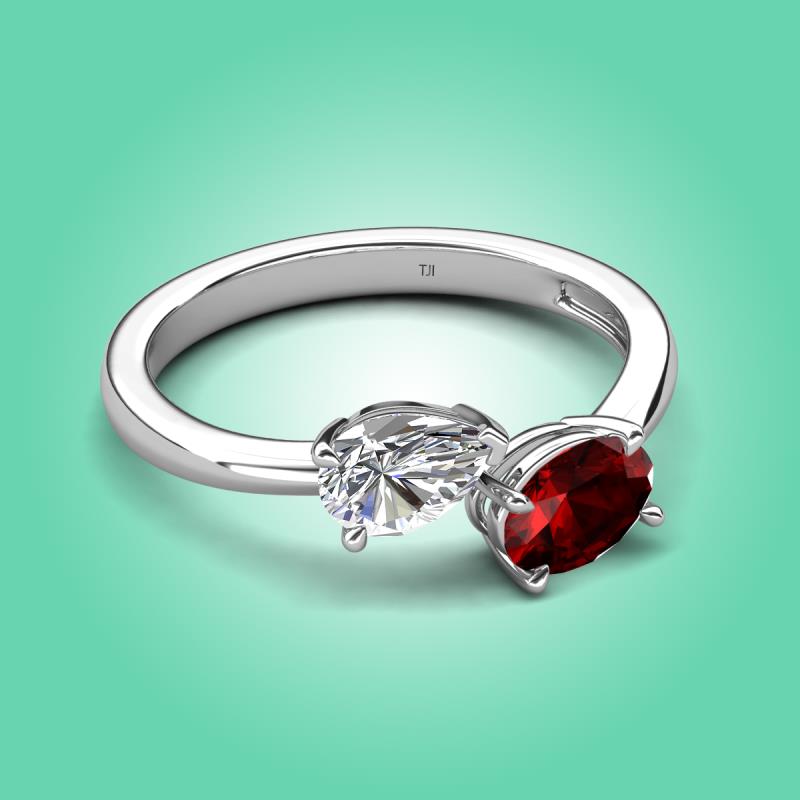 1.75 ctw GIA Certified Natural Diamond Pear Shape 7x5 mm & Red Garnet Oval Shape 7x5 mm with Prong setting Two Stone Duo Women Engagement Ring in 14K White Gold More Details ...
