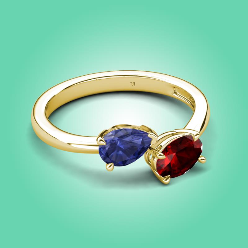 1.55 ctw Iolite Pear Shape 7x5 mm & Red Garnet Oval Shape 7x5 mm with Prong setting Two Stone Duo Women Engagement Ring in 14K Yellow Gold More Details ...