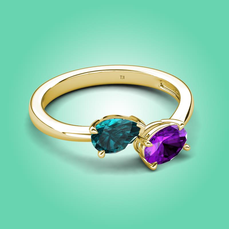 1.57 ctw London Blue Topaz Pear Shape 7x5 mm & Amethyst Oval Shape 7x5 mm with Prong setting Two Stone Duo Women Engagement Ring in 14K Yellow Gold More Details ...