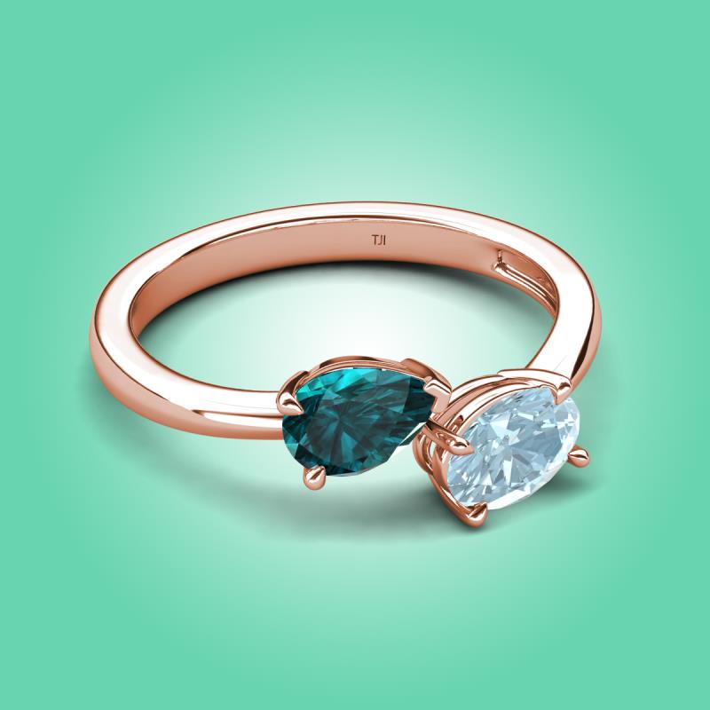 1.57 ctw London Blue Topaz Pear Shape 7x5 mm & Aquamarine Oval Shape 7x5 mm with Prong setting Two Stone Duo Women Engagement Ring in 18K Rose Gold More Details ...
