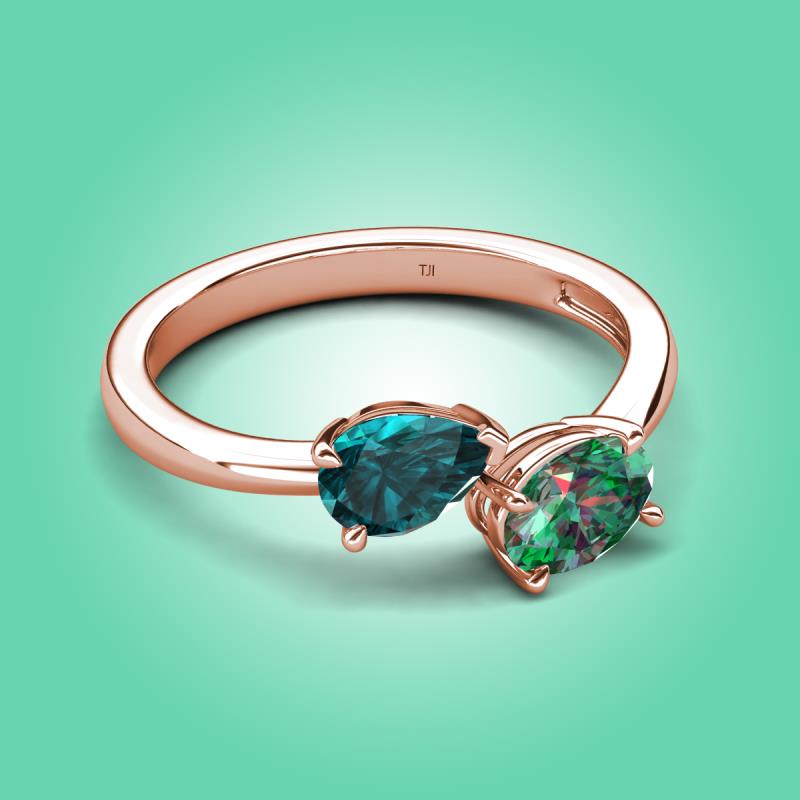 • 1 London Blue Topaz Pear Shape 0.85 ctw/7x5 mm and 1 Lab Created Alexandrite Oval Shape 1.16 ctw/7x5 mm Two Stone Duo Engagement Ring set in a Prong Setting.