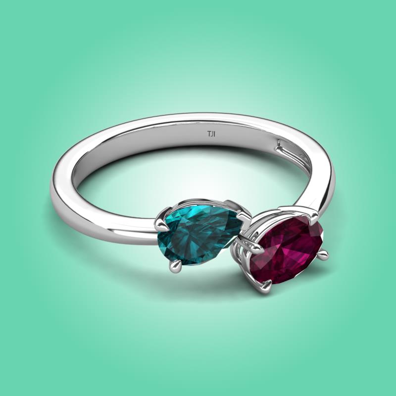 1.85 ctw London Blue Topaz Pear Shape 7x5 mm & Rhodolite Garnet Oval Shape 7x5 mm with Prong setting Two Stone Duo Women Engagement Ring in 14K White Gold More Details ...