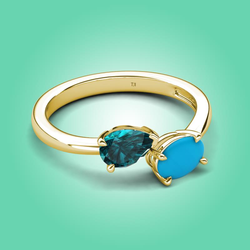 1.55 ctw London Blue Topaz Pear Shape 7x5 mm & Turquoise Oval Shape 7x5 mm with Prong setting Two Stone Duo Women Engagement Ring in 18K Yellow Gold More Details ...