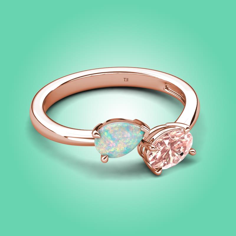 • 1 Opal Pear Shape 0.35 ctw/7x5 mm and 1 Morganite Oval Shape 0.75 ctw/7x5 mm Two Stone Duo Engagement Ring set in a Prong Setting.