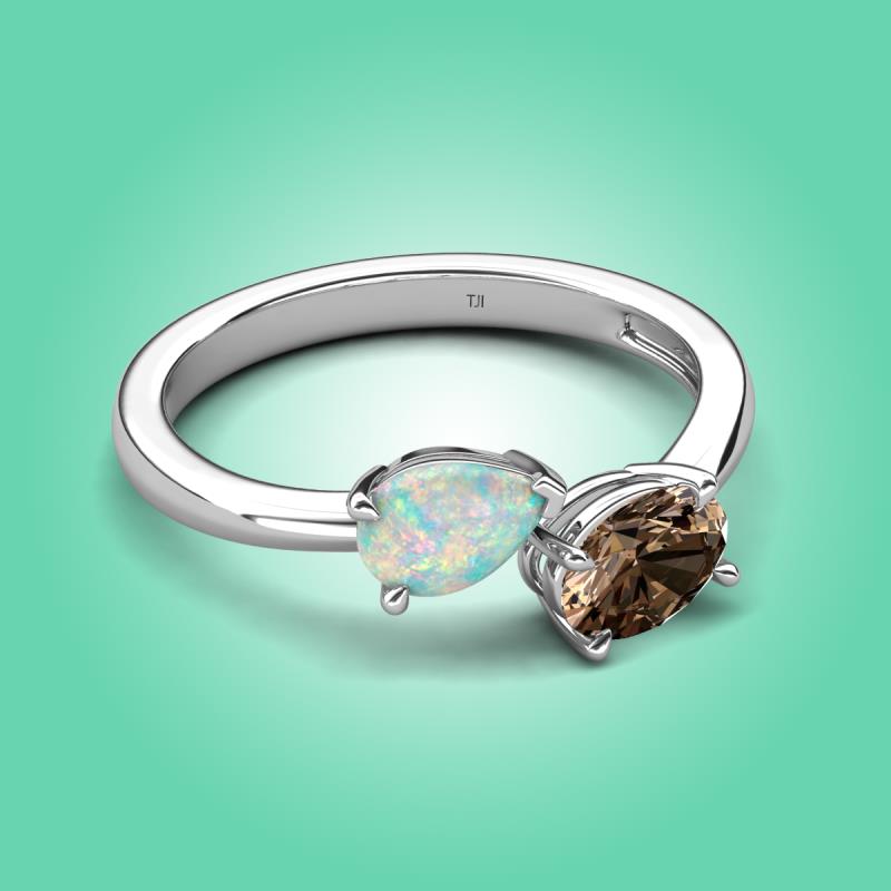 1.10 ctw Opal Pear Shape 7x5 mm & Smoky Quartz Oval Shape 7x5 mm with Prong setting Two Stone Duo Women Engagement Ring in Platinum More Details ...