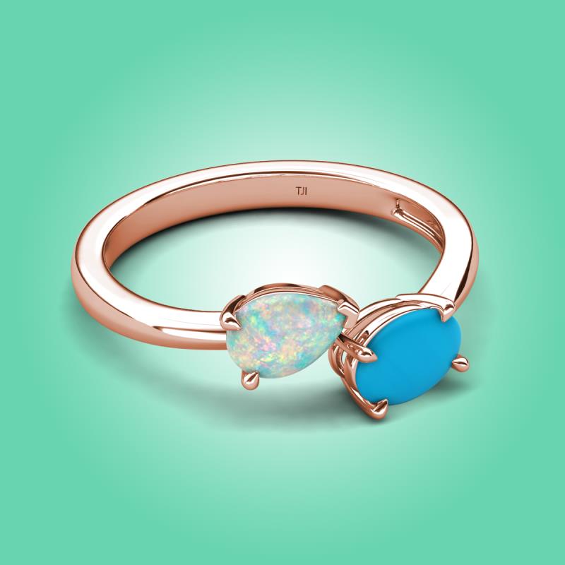 1.05 ctw Opal Pear Shape 7x5 mm & Turquoise Oval Shape 7x5 mm with Prong setting Two Stone Duo Women Engagement Ring in 18K Rose Gold More Details ...