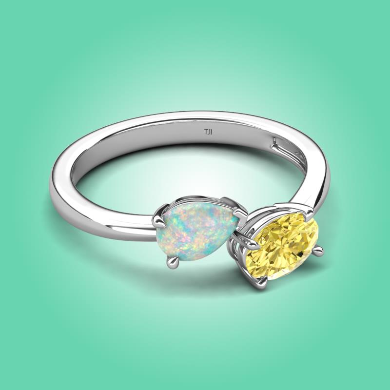 1.35 ctw Opal Pear Shape 7x5 mm & Yellow Sapphire Oval Shape 7x5 mm with Prong setting Two Stone Duo Women Engagement Ring in 18K White Gold More Details ...