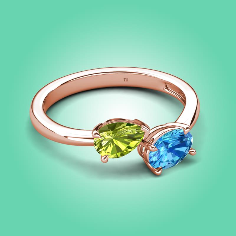 1.80 ctw Peridot Pear Shape 7x5 mm & Blue Topaz Oval Shape 7x5 mm with Prong setting Two Stone Duo Women Engagement Ring in 14K Rose Gold More Details ...
