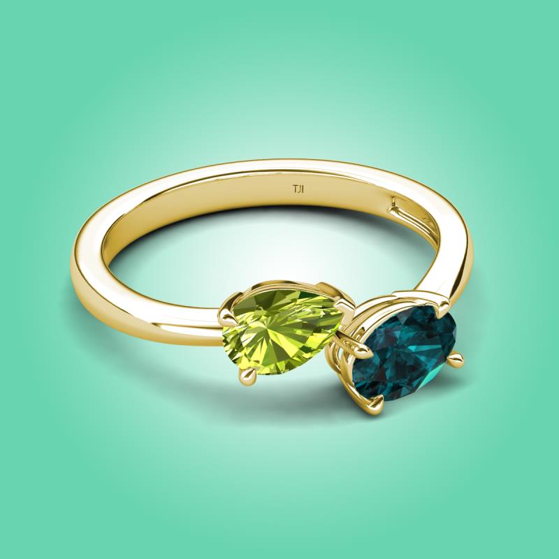 1.80 ctw Peridot Pear Shape 7x5 mm & London Blue Topaz Oval Shape 7x5 mm with Prong setting Two Stone Duo Women Engagement Ring in 18K Yellow Gold More Details ...
