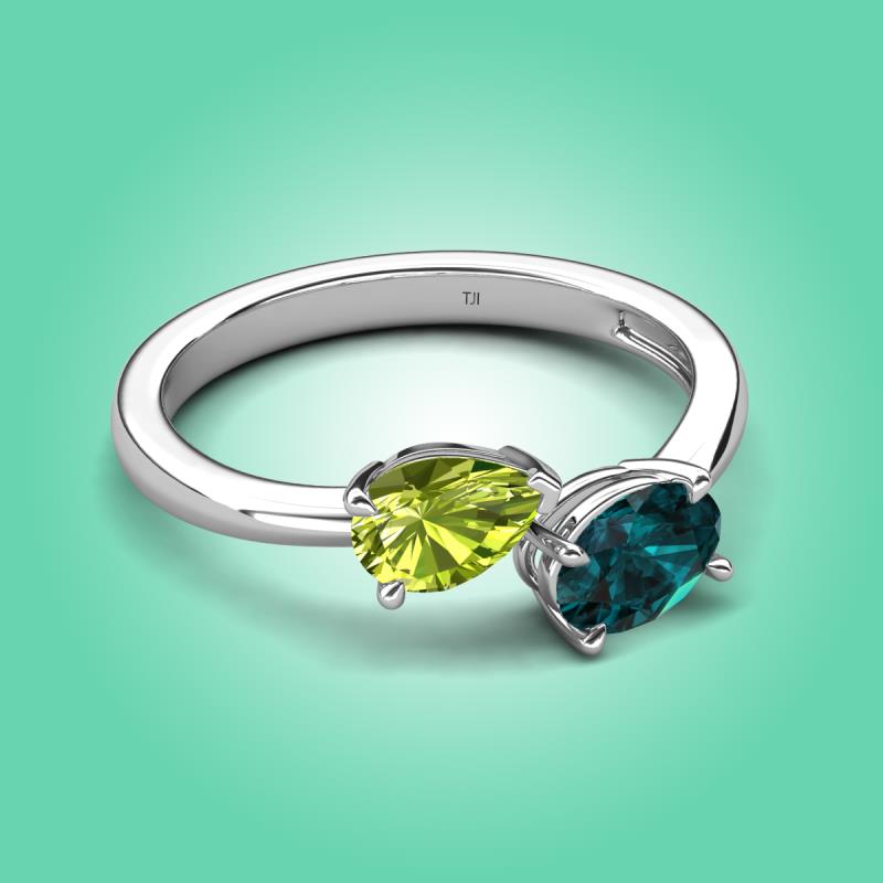 1.80 ctw Peridot Pear Shape 7x5 mm & London Blue Topaz Oval Shape 7x5 mm with Prong setting Two Stone Duo Women Engagement Ring in Platinum More Details ...