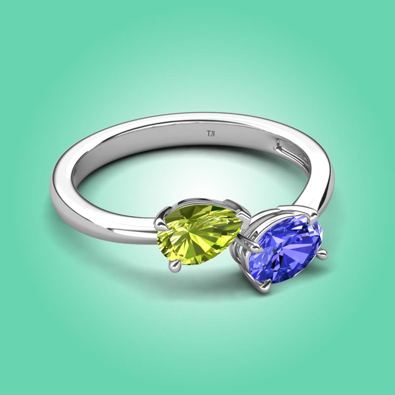 1.65 ctw Peridot Pear Shape 7x5 mm & Tanzanite Oval Shape 7x5 mm with Prong setting Two Stone Duo Women Engagement Ring in 14K White Gold More Details ...